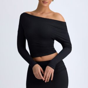 Modal Off-Shoulder Long-Sleeve Top in Black