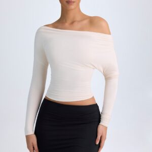 Modal Off-Shoulder Ruched Bodysuit in Ivory