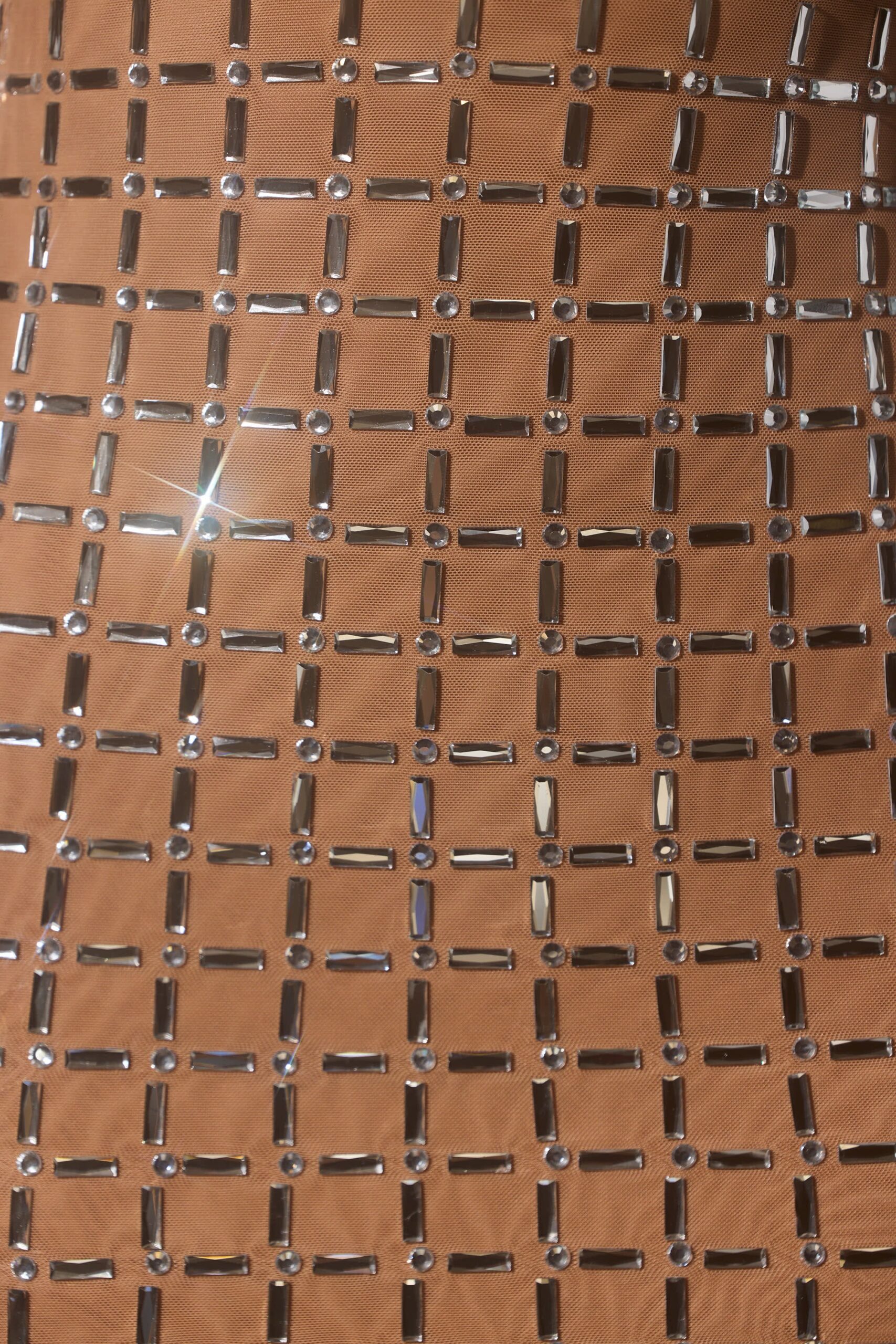 Party-ready perfection. Embellished with our all-new square HOTFIX embellishments for maximum sparkle. the Ronja mini dress is crafted from premium 40D stretch mesh and lined for the perfect amount of coverage. It’s framed with darted cups for enhanced shaping. a plunge V-neck. and adjustable camisole shoulder straps for your perfect fit.
